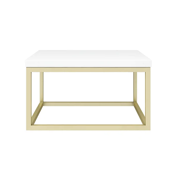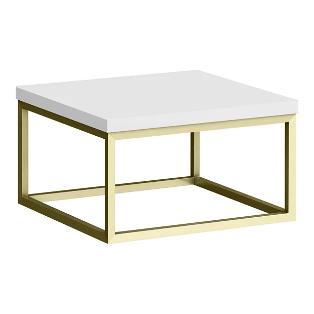 The smart space-saving Arezzo 500mm wide stone resin gloss white wall hung counter top basin shelf features minimalist clean lines. Supplied with a supporting brushed brass steel towel rail frame, perfect for creating a stunning, fashionable and chic bathroom interior. The practical square frame provides a space to hang your towel, keeping it close to hand. Complete the look with one of our stylish counter top basins, brushed brass basin taps and exposed bottle traps (not included).
