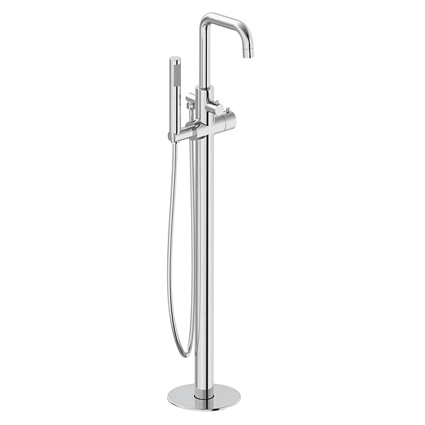 Cruze Modern Round Thermostatic Floor Mounted Freestanding Bath Shower Mixer Polished Chrome