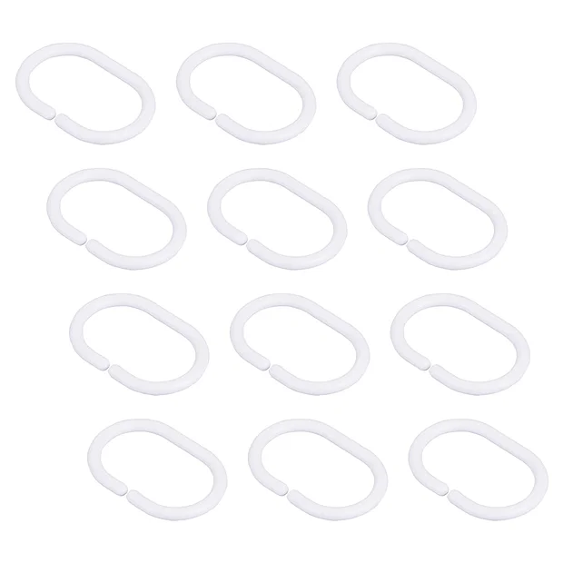 - Includes 12 white shower curtain rings