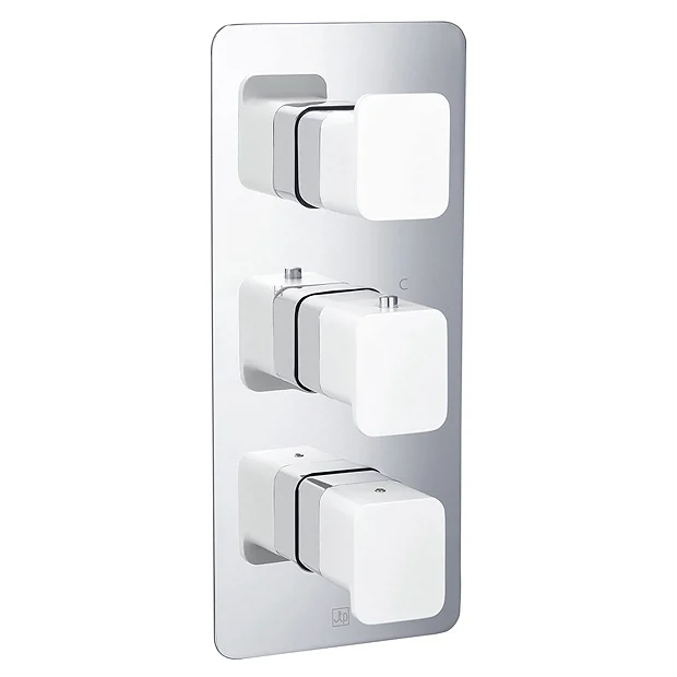 JTP Axel Twin Outlet Thermostatic Concealed Shower Valve Vertical with Matt White Handles – 74690MWH