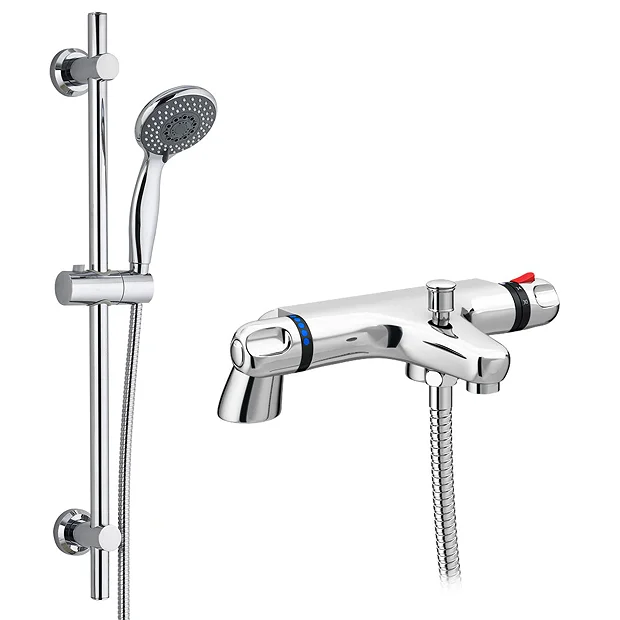Modern Chrome Thermostatic Bath Shower Mixer Tap + Slider Shower Rail Kit