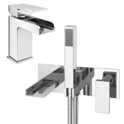 The super stylish Monza wall hung square modern short projection 1 tap hole basin with semi pedestal, it’s contemporary elegant lines and compact size make it ideal for smaller bathrooms and en-suites; made from high grade ceramic with a smooth cool white finish. The 550mm wide basin only projects from the wall by 415mm. Comes supplied with a semi pedestal which helps give your bathroom an open look.
